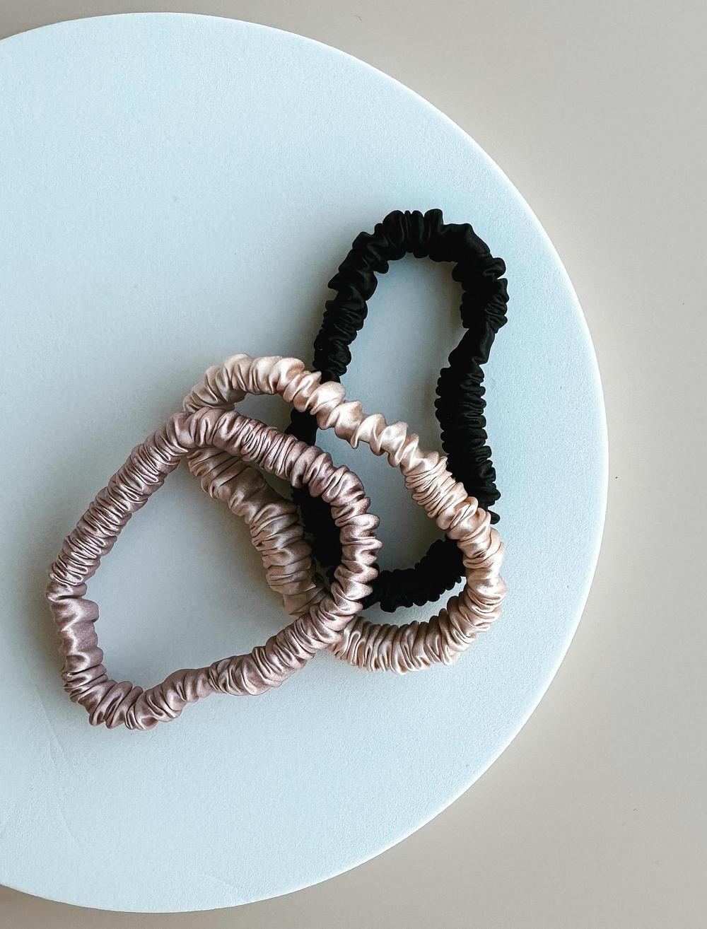 Gentle 100% organic silk scrunchies that protect your hair from damage and...